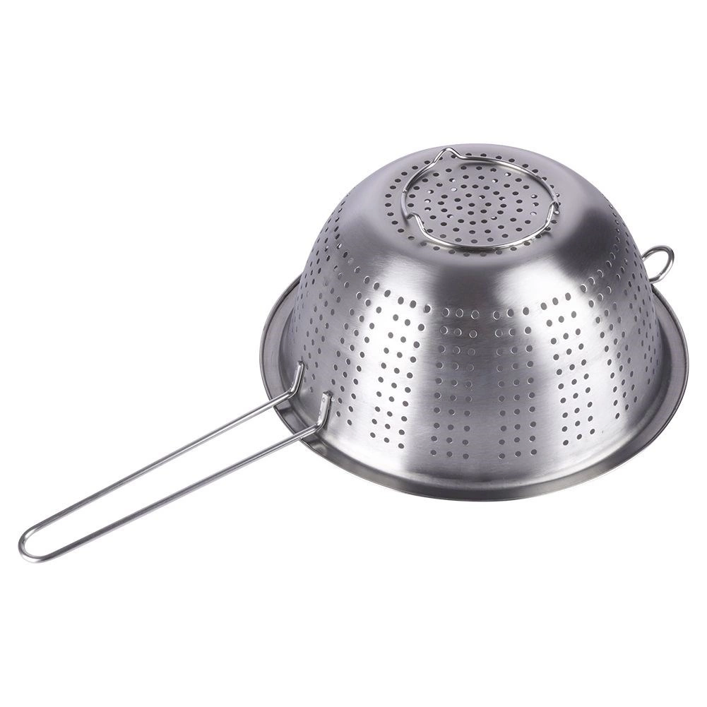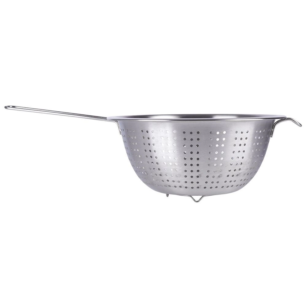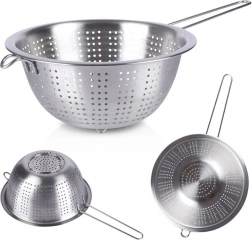 Nerezový cedník v miskovitom tvare kombinuje odolnosť, pohodlie a bezpečnosť pre kontakt s potravinami. Dlhá rukoväť zabezpečuje istý úchop, menšie protiľahlé očko umožní oprenie o hrniec či misu a nožičky zaistia stabilitu v dreze alebo na pracovnej doske. Perfektný pomocník do každej kuchyne.