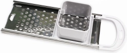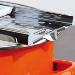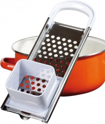 Praktický doraz a rukoväť umožnia pohodlne strúhať a pretláčať priamo nad hrncom bez neporiadku.