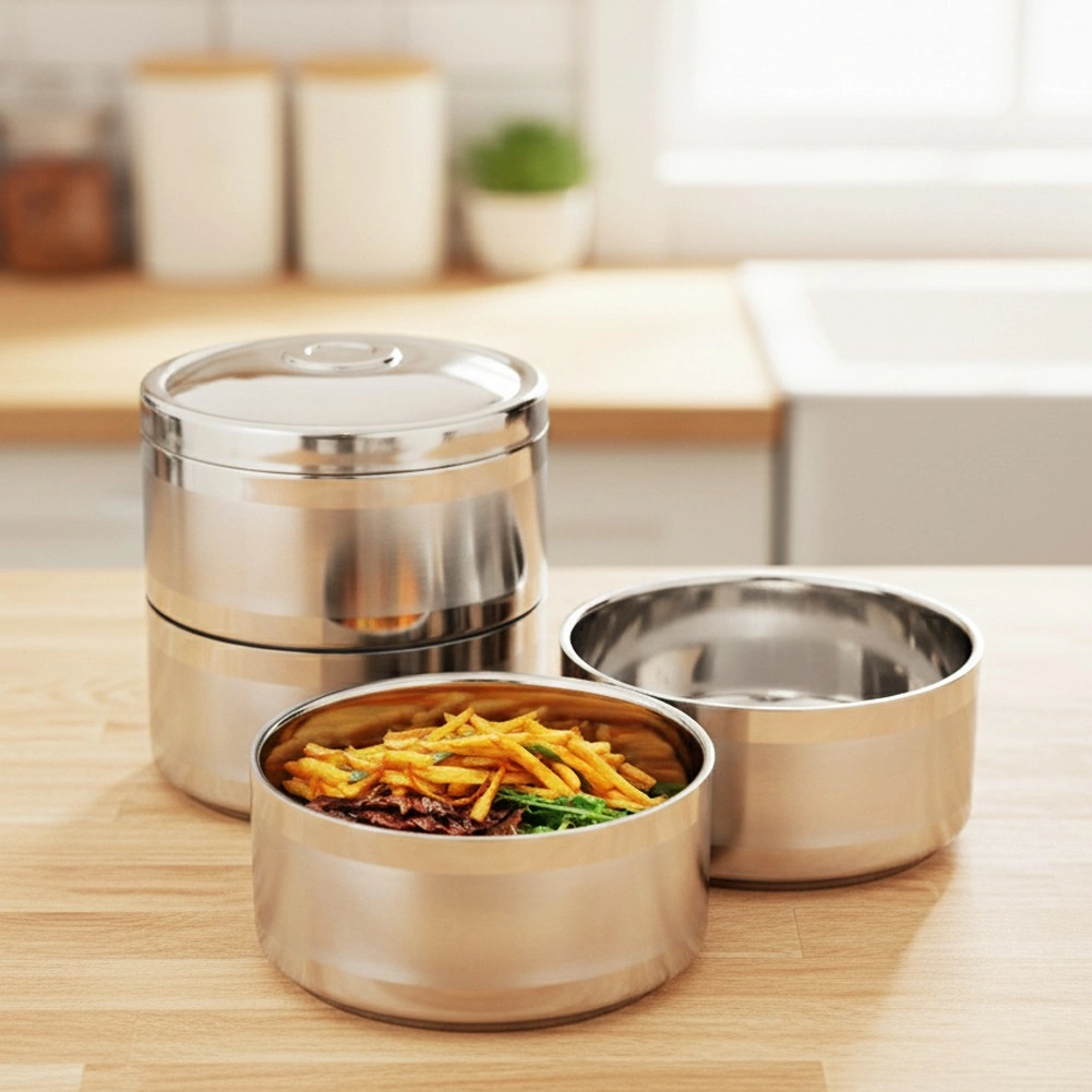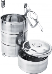 Oddelte jednotlivé chody bez miešania chutí. Každá miska má veko a všetko istí pevný rám so sponami a horným madlom.