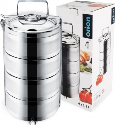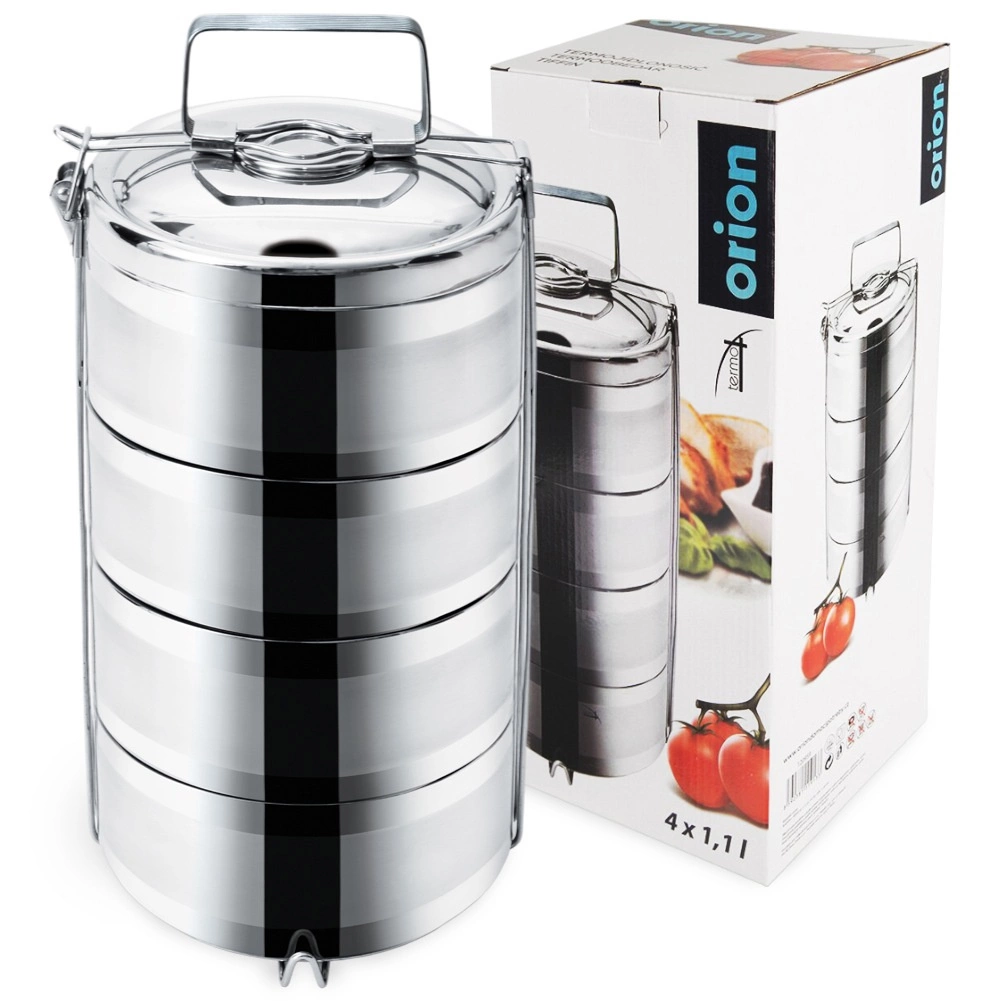 Praktický nerezový obedár so 4 oddelenými poschodiami a kapacitou 4×1,1 l udrží vaše pokrmy dlhšie teplé alebo studené vďaka dvojitej stene s vákuovou izoláciou. Robustná nehrdzavejúca oceľ, bezpečné bočné spony a pohodlné madlo zabezpečia jednoduché prenášanie obedov do práce, na výlety aj pikniky.