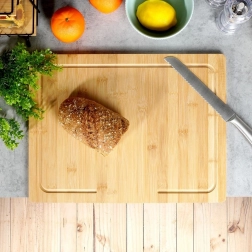 Rozmer 45 × 35 cm poskytuje dosť miesta na krájanie aj vaľkanie cesta. Bambus je ekologický, pevný, nedeformuje sa a nepohlcuje pachy.