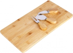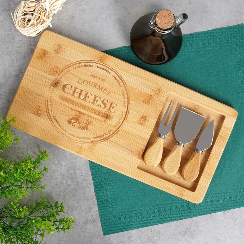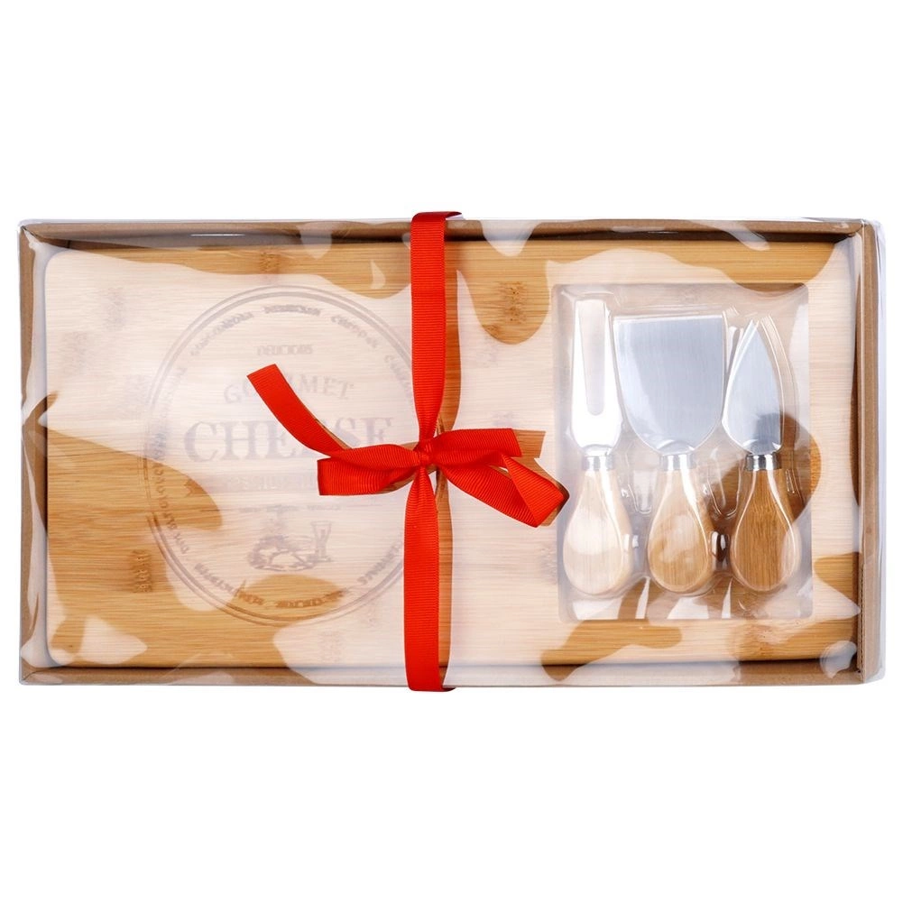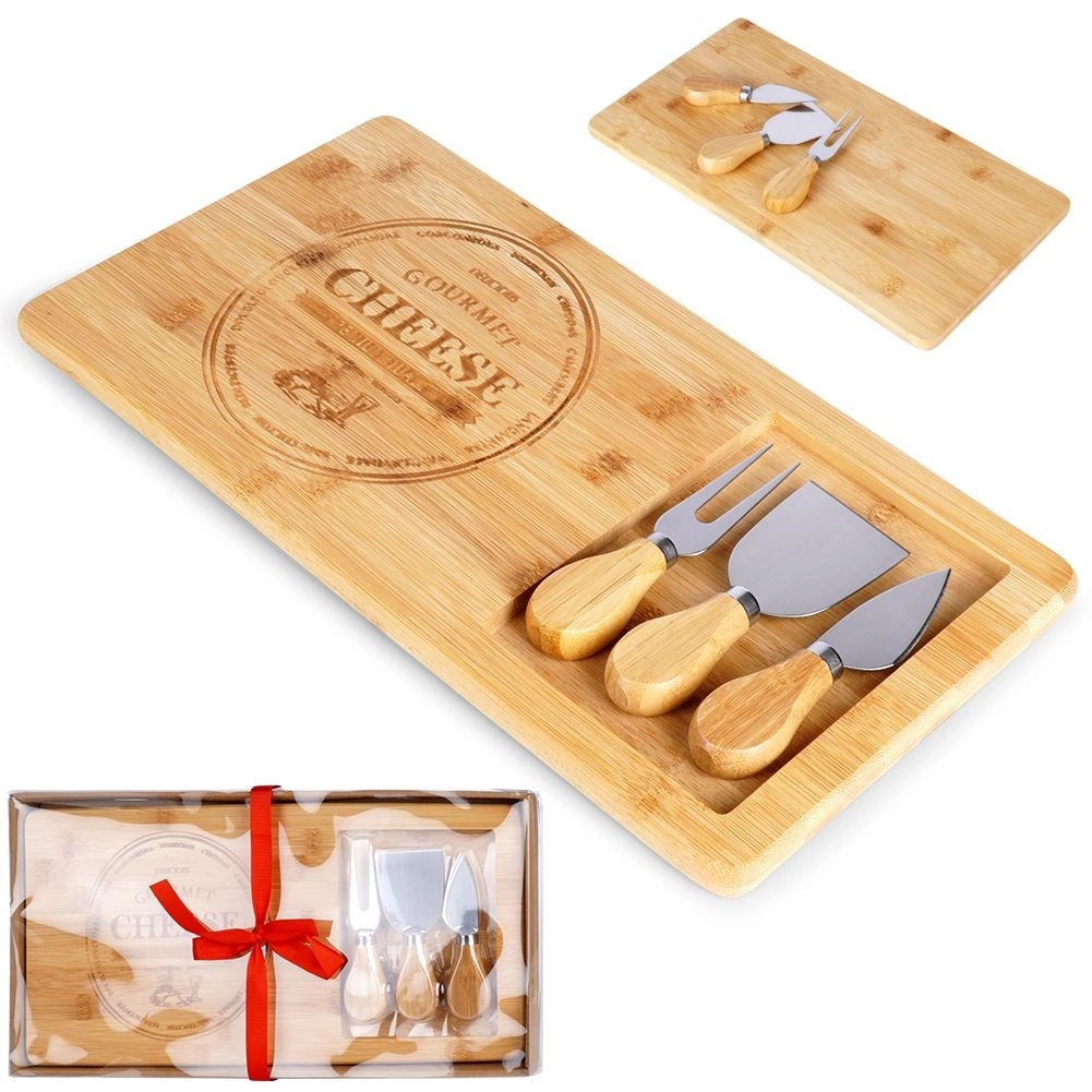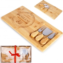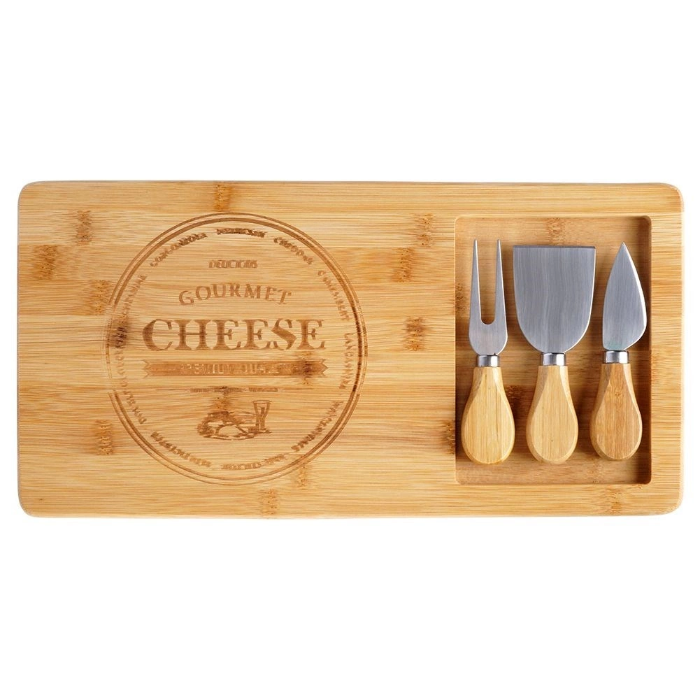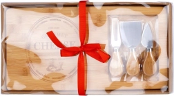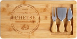Štýlová bambusová sada na syr s integrovaným uložením nástrojov. Obsahuje dosku a tri nerezové nástroje na krájanie a servírovanie. Ideálna na tvrdé, polotvrdé aj mäkké syry, ale aj údeniny a snacky. Prírodný bambus, nerezová oceľ, jednoduchá údržba a praktická priehradka na nože z nej robia perfektný doplnok na domáce degustácie aj večery pri víne.