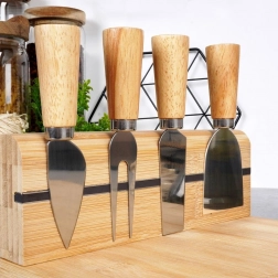 Široký sekáčik, úzky nôž, vidlička a nôž na mazanie pokryjú krájanie, porciovanie aj servírovanie mäkkých i tvrdých syrov.