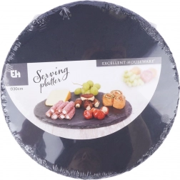 Elegantný okrúhly podnos z prírodnej bridlice s priemerom 30 cm na štýlové servírovanie. Ponúka rustikálny vzhľad, pevný kamenný povrch a univerzálne použitie na syry, predjedlá, dezerty aj teplé jedlá. Vďaka protišmykovým podložkám je stabilný a bezpečný na každom stole.