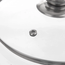 Integrovaný odvetrávací otvor odvádza prebytočnú paru a minimalizuje prekypenie. Vďaka mierne klenutému tvaru lepšie cirkuluje horúci vzduch, čo urýchľuje prípravu jedál. Protišmykový nerezový rantl pomáha k spoľahlivému dosadnutiu na riad a komfortnému použitiu.