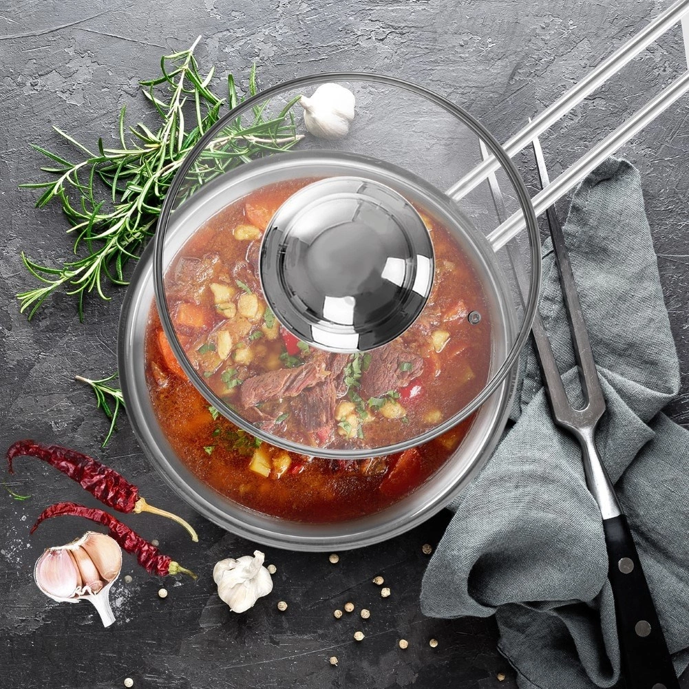 - Bezpečné a praktické: žiaruvzdorné sklo, nerezový lem a pohodlný úchyt