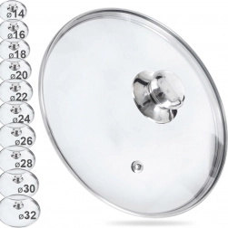 Sklenená pokrievka s priemerom 30 cm je ideálnym doplnkom do každej kuchyne. Priehľadné žiaruvzdorné sklo umožňuje kontrolu varenia bez zbytočnej straty tepla a pary, zatiaľ čo parný ventil odvádza prebytočnú vlhkosť. Nerezový okraj a gombík zabezpečujú odolnosť a dlhú životnosť.