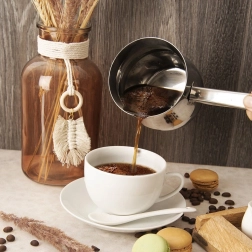 Objavte autentickú chuť tureckej kávy s elegantnou nerezovou džezvou s objemom 600 ml. Vďaka robustnej konštrukcii z nehrdzavejúcej ocele zabezpečuje rovnomerné zahrievanie, jednoduché čistenie a dlhú životnosť. Praktický zobáčik umožňuje presné a čisté nalievanie, zatiaľ čo špeciálny horný límec pomáha zabrániť pretečeniu pri vare.