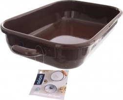 Praktický smaltovaný pekáč v hnedej farbe s objemom 2,2 l je ideálny na pečenie mäsa, zeleniny a zapekaných jedál. Univerzálne použitie na plyn, elektrinu, sklokeramiku, halogén aj indukciu, s pohodlnými úchytmi a jednoduchou údržbou – možno umývať v umývačke.