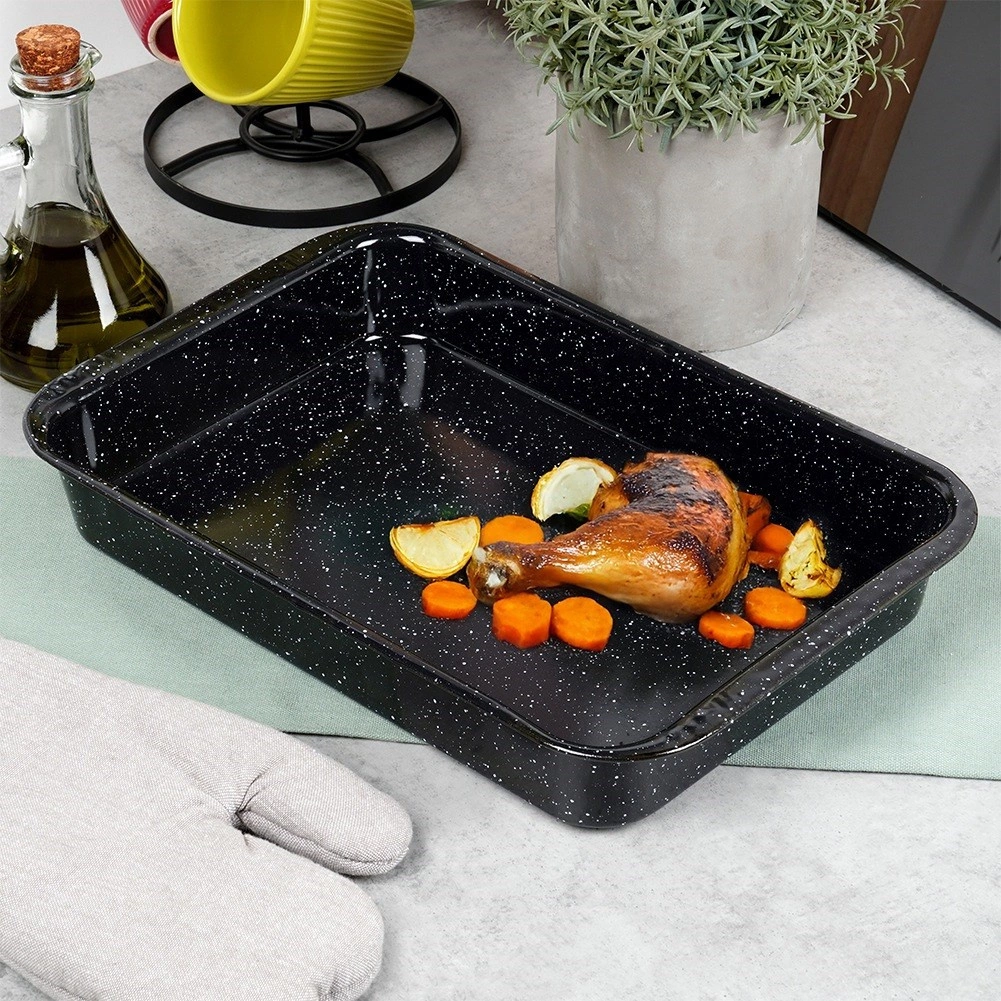 Tento smaltovaný pekáč prináša spoľahlivý výkon na každodenné varenie aj sviatočné pečenie. Vďaka vysokým okrajom udrží šťavy a zabezpečí rovnomerné prepečenie. Smaltovaný povrch je hladký, odolný a ľahko sa udržiava, takže po dopečení stačí minimum námahy.