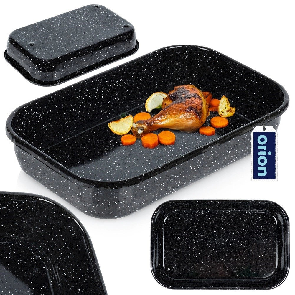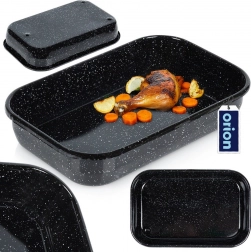 Smaltovaný pekáč ORION v elegantnej čiernej farbe je odolný, univerzálny a pripravený na každodenné pečenie. Vďaka vyšším okrajom výborne drží šťavy a tuky, zabezpečuje rovnomerné prepečenie a pohodlné servírovanie priamo z rúry na stôl.