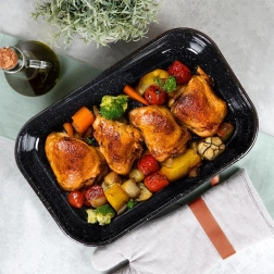 Objem 4,8 l a praktická hĺbka udržia šťavy vo vnútri pokrmu – ideálne na pečenie mäsa aj šťavnaté zapekané jedlá.