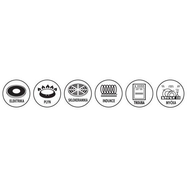 Silné dno zaručuje efektívny rozvod tepla na plyne, elektrine, sklokeramike, halogéne aj indukcii a je vhodné aj do rúry.