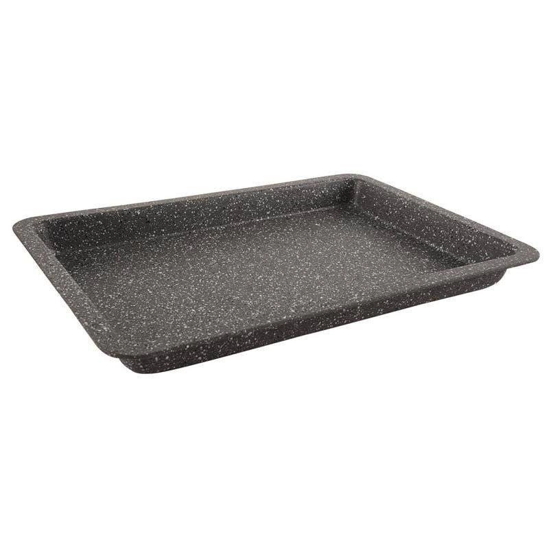 Táto priestranná pekáčová forma 43 × 29 cm s vnútornými rozmermi 37,5 × 25 cm je ideálna na koláče, rezy, mäso, zeleninu aj studené dezerty. Odolná konštrukcia z uhlíkovej ocele s granitovým nepriľnavým povrchom minimalizuje pripekanie a uľahčuje servírovanie aj čistenie.