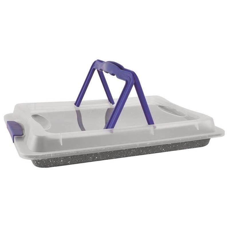 Pevné priesvitné veko s klipmi a sklopným držadlom udrží koláče aj lahôdky v bezpečí pri ceste na návštevu či piknik.
