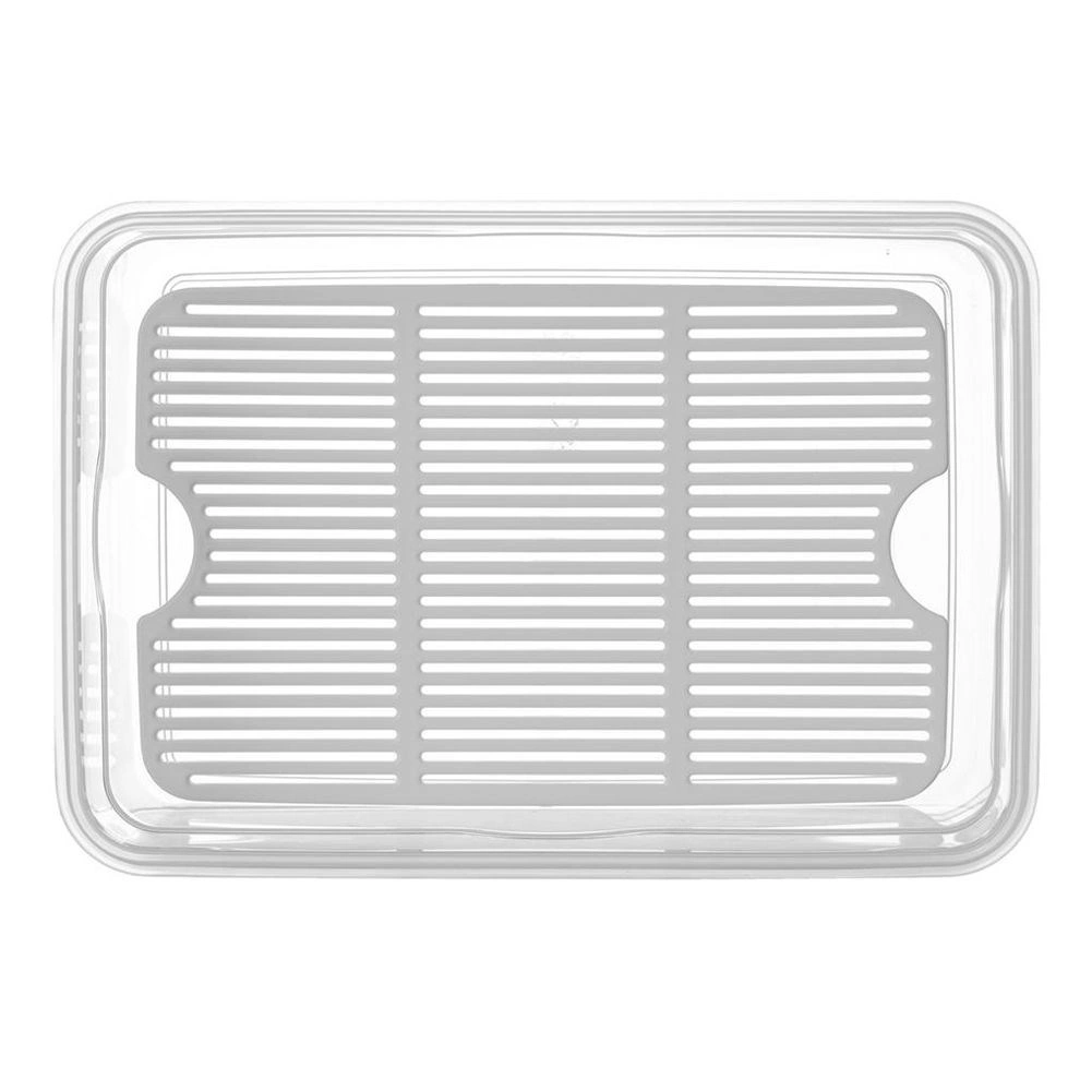 Udržujte svoje potraviny dlhšie čerstvé s univerzálnym boxom s objemom 2,6 l. Silikónové tesnenie a štyri pevné klipsy sa postarajú o bezpečné uzavretie bez pretekania, zatiaľ čo vyberateľná mriežka zabezpečuje cirkuláciu vzduchu a oddelenie potravín od vlhkosti na dne.
