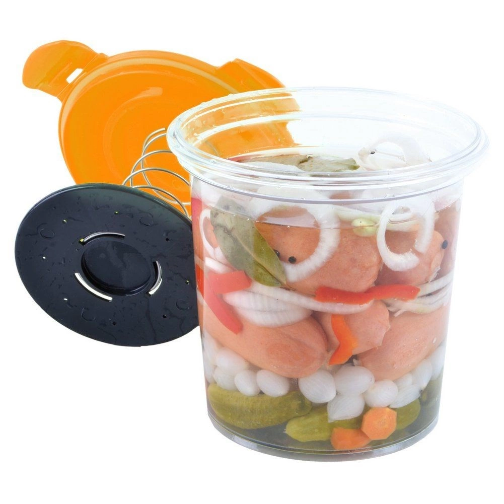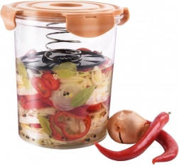 Veko so 4 klipmi a silikónovým tesnením uzatvára nádobu hermeticky, takže je vhodná aj na prenášanie. Vďaka premyslenej konštrukcii spotrebujete menej oleja, marinády či soľanky a zároveň dosiahnete intenzívnejšiu chuť.