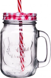Tento sklenený pohár v štýle mason jar kombinuje praktické detaily s atraktívnym vzhľadom. Hrubostenové sklo dodáva odolnosť, skrutkovacie kovové viečko bráni rozliatiu a nečistotám a slamka umožňuje pohodlné popíjanie. Skvele sa hodí na domáce limonády, smoothie, džúsy aj osviežujúce drinky s ľadom.
