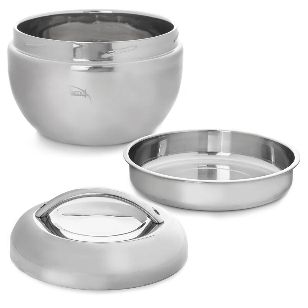 Hlavná misa, vnútorná miska/tanier a veko s rukoväťou. Prenášanie je pohodlné a servírovanie prehľadné – všetko na jednom mieste.
