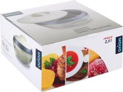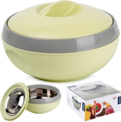 Praktická termo misa na jedlo s kapacitou 2,5 l (užitočná 2,2 l) udrží vaše pokrmy teplé až 2 hodiny vďaka nerezovej vložke. Ľahká konštrukcia, jednoduché zatváranie pootočením veka a pohodlné madlo na prenášanie. Ideálna na servírovanie teplých jedál aj na uchovávanie zmrzliny v lete.