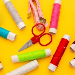 - Nite v rôznych farbách, ihly, malé nožničky, krajčírsky meter, gombíky, náprstok, navliekač nite, zavíracie špendlíky, ihlovník