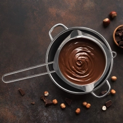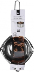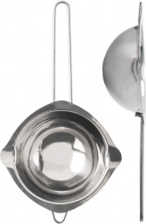 Praktická nerezová miska s objemom 250 ml a priemerom 14 cm na šetrné rozpúšťanie čokolády, masla či vosku v kúpeli vo vodnom kúpeli. Vďaka dlhej rukoväti, stabilizačnému háčiku a vylievačkám na oboch stranách zabezpečí pohodlné a čisté prelievanie. Vyrobená z kvalitnej nerezovej ocele, bezpečná pre potraviny a vhodná do umývačky.