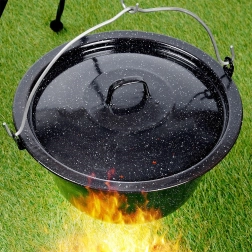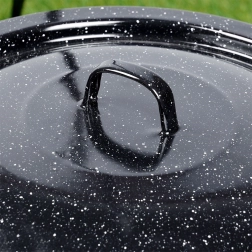 Táto smaltovaná pokrievka je ideálny doplnok na vonkajšie varenie v kotlíku – od gulášov po polievky. Sedí na maďarské kotlíky s objemom 9,5 l a vďaka klenutému tvaru účinne udržiava teplo aj vlhkosť, čím skracuje čas varenia a zlepšuje výslednú chuť jedál.