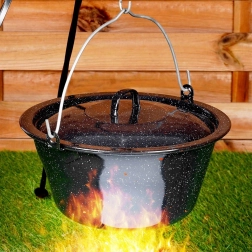 - Praktické použitie: na varenie nad ohňom aj na záhrade, jednoduchá údržba