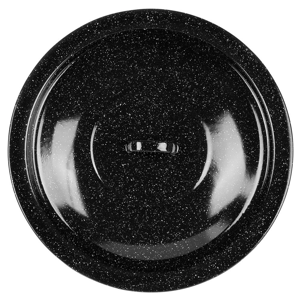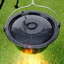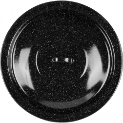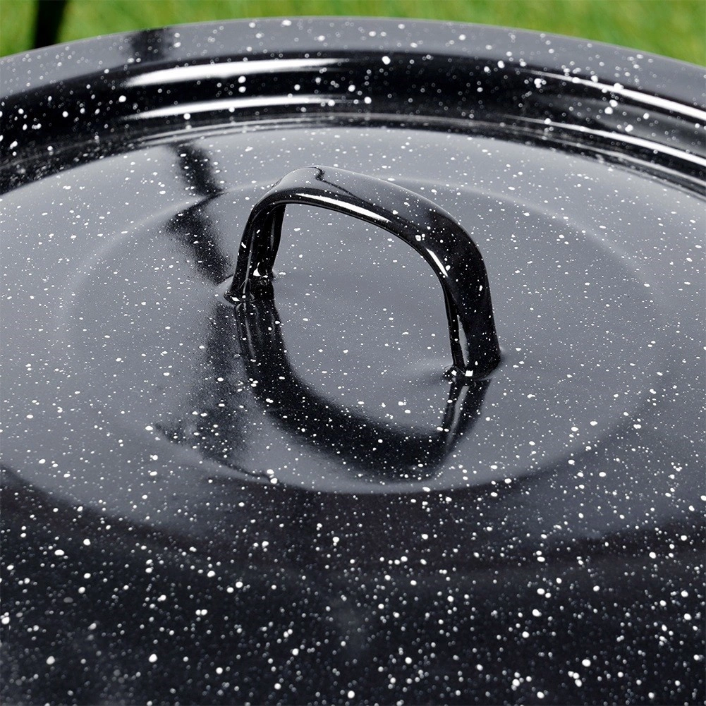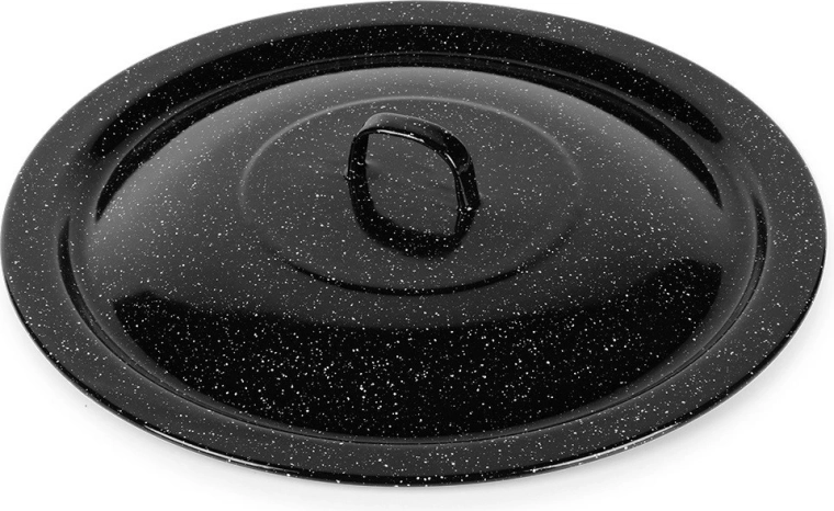 Robustná pokrievka z čierno škvrnitej smaltovanej ocele je ideálna na varenie v prírode aj na záhrade. Udrží teplo a vlhkosť v kotlíku, zrýchli var a zlepší chuť polievok, gulášov či dusených jedál. Vhodná pre maďarské kotlíky s objemom 13 l (priemer 40 cm).