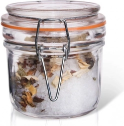 Univerzálny sklenený pohár s praktickým pákovým uzáverom spoľahlivo ochráni obsah pred vlhkosťou a nečistotami. Gumené tesnenie v oranžovej farbe zabezpečuje dokonalú tesnosť, takže sa skvele hodí na koreniny, sypké zmesi, mleté orechy či malé ovocie ako brusnice, čučoriedky a maliny.