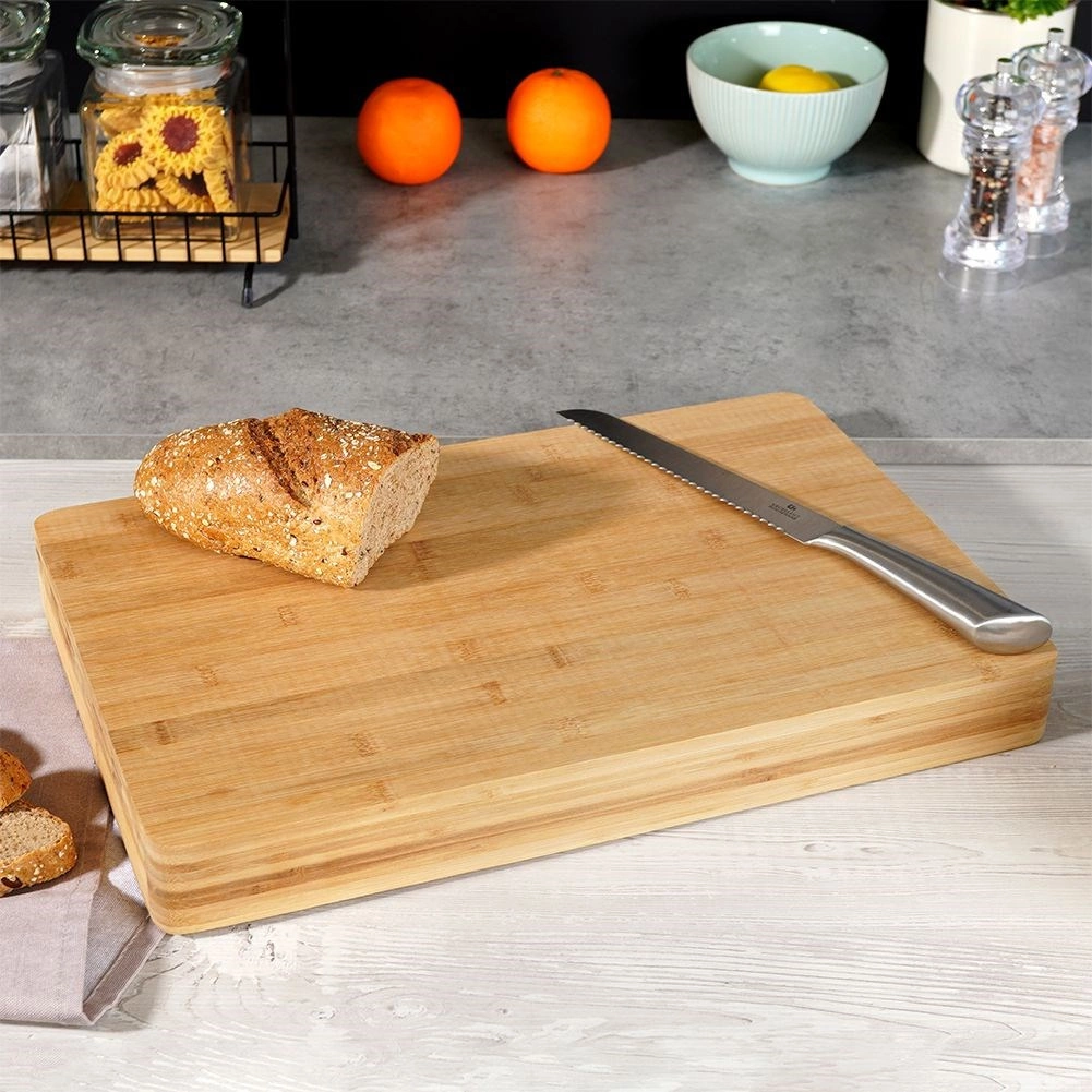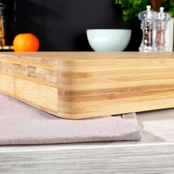 Táto masívna doska z prírodného bambusu je skvelým pomocníkom na každodennú prípravu jedál aj atraktívne servírovanie syrov, údenín, ovocia či snackov. Bambusové drevo je prirodzene odolné voči vlhkosti a deformáciám, zároveň je šetrné k ostriu nožov a ľahko sa udržiava v čistote.
