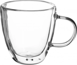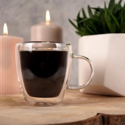 Štýlový pohár s dvojitou stenou je ideálny pre latte, cappuccino, čaj aj studené limonády. Dvojitá stena zlepšuje tepelnú izoláciu – horúci nápoj vydrží dlhšie teplý a studený dlhšie chladný, pričom vonkajšia stena zostáva chladnejšia do ruky.