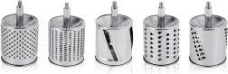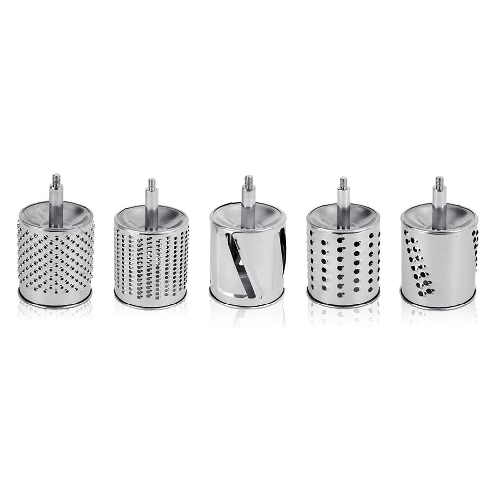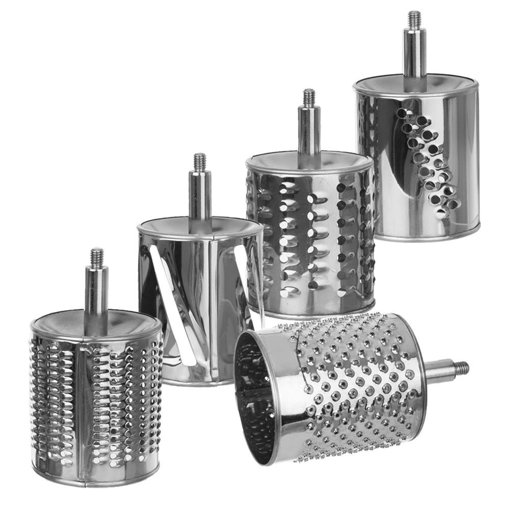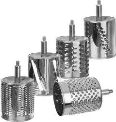 Sada 5 nerezových bubnov pokryje jemné aj hrubé strúhanie, plátkovanie a drvenie. Ideálne na syr, orechy, čokoládu, zeleninu aj ovocie.
