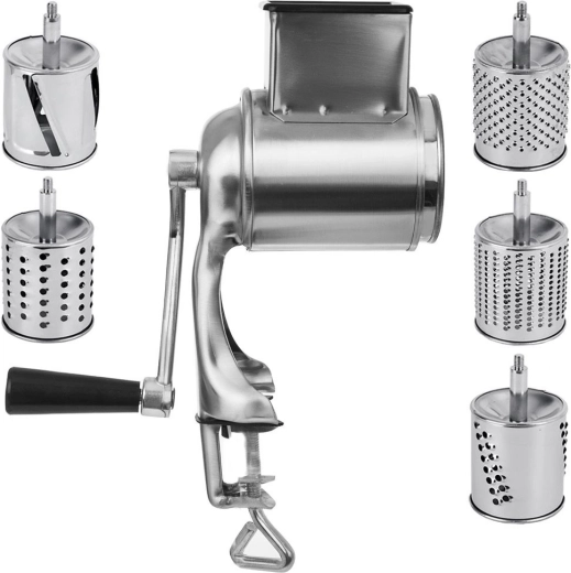 Súčasťou balenia je 5 vymeniteľných bubnov na jemné a hrubé strúhanie, krájanie a drvenie. Pripravíte s nimi čerstvú strúhanku, nastrúhate syr, orechy či čokoládu a nakrájate ovocie aj zeleninu do šalátov alebo dezertov. Vďaka ochranným podložkám svorka nepoškodí dosku a prístroj drží pevne na mieste.