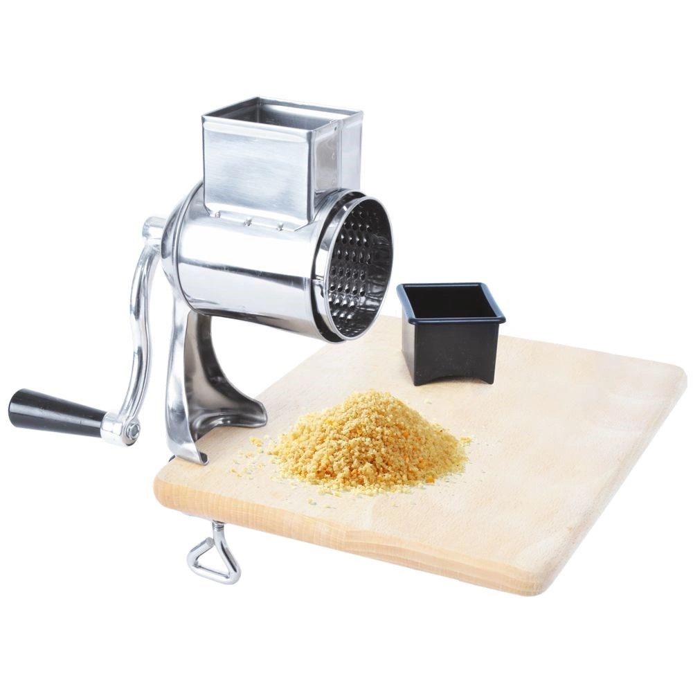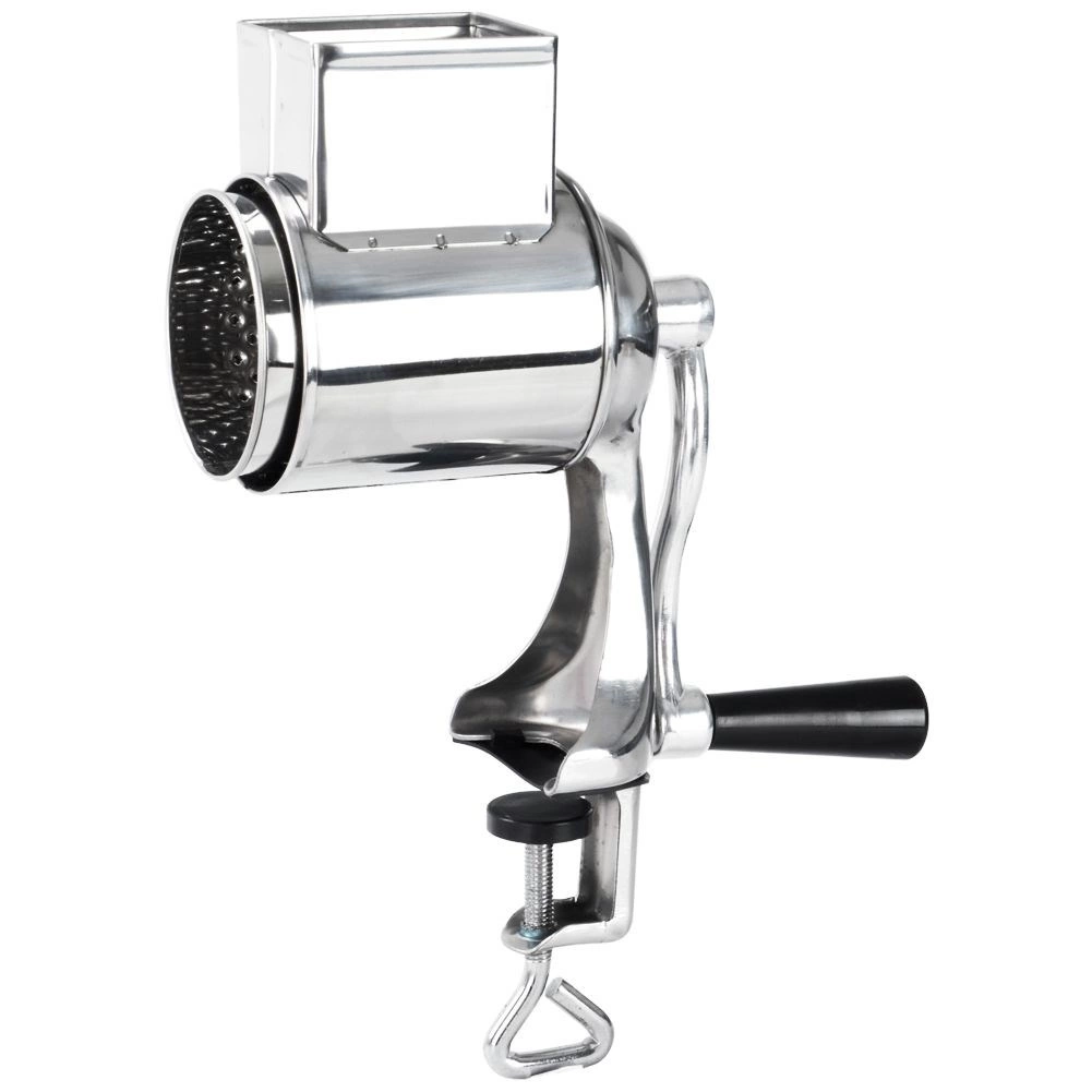 Praktické ručné rotačné strúhadlo so skrutkovacím uchytením k pracovnej doske (max. hrúbka cca 3,5 cm) zabezpečuje výbornú stabilitu pri práci. Telo z nehrdzavejúcej ocele v kombinácii s odolným plastom a pohodlná kľuka umožňujú plynulé strúhanie bez veľkej sily. Zásobník s rozmermi cca 6 × 5 cm ľahko pojme suroviny na plynulé dávkovanie.