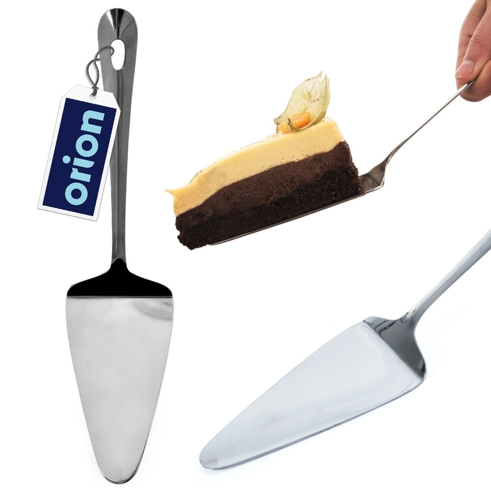 Zjednodušte si servírovanie dezertov s nerezovou lopatkou ORION. Jednodielne kovové prevedenie s lešteným povrchom sa ľahko čistí a dlhodobo odoláva opotrebovaniu. Ostré hrany pomáhajú ľahko podebrať a naporcovať torty, koláče aj pizzu, zatiaľ čo ergonomická rukoväť zaisťuje istý a komfortný úchop.
