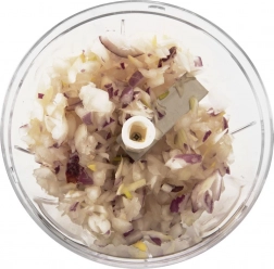 Transparentná nádoba umožňuje priebežne sledovať stupeň nasekania. Protišmykový krúžok na spodnej strane drží sekáčik iste na mieste.