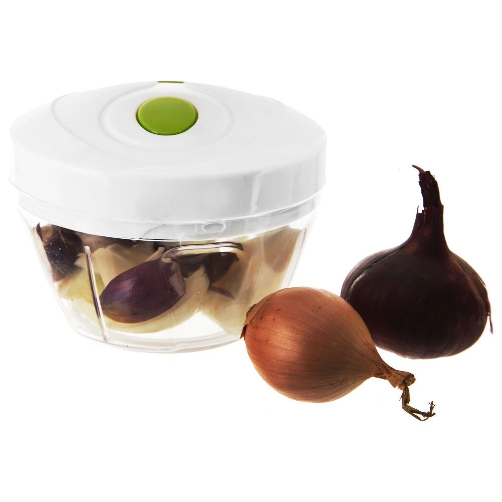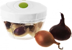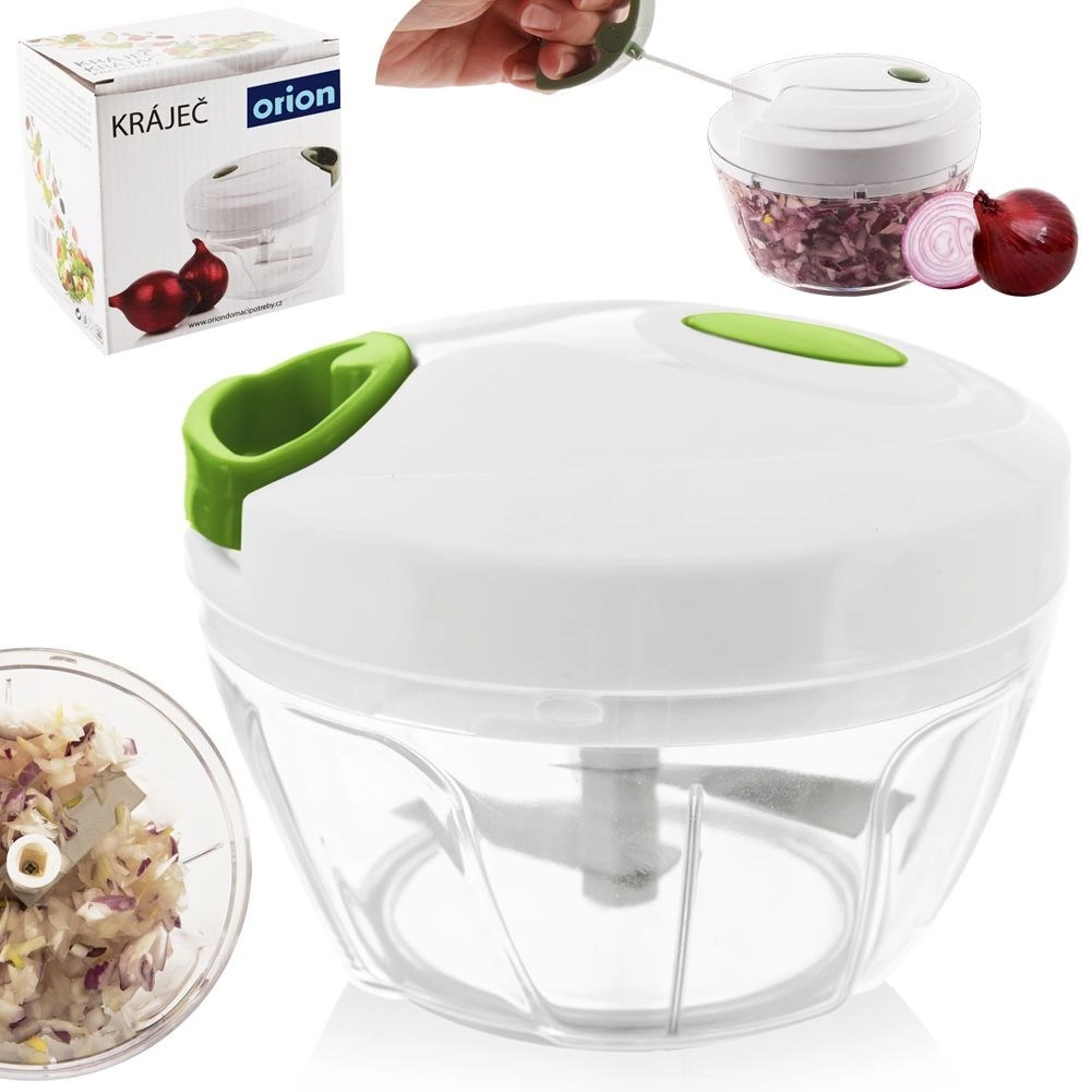 Odolné prevedenie z kvalitného plastu, dvojité nože z nehrdzavejúcej ocele pre rýchle a rovnomerné výsledky a protišmykový prstenec na spodnej časti pre istotu a pohodlie pri práci. Ideálny na zeleninu, cibuľu, ovocie, bylinky, čokoládu aj orechy – nepostrádateľný pomocník do každej kuchyne.