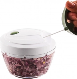 Praktický kuchynský pomocník na každodennú prípravu – ručný sekáčik s ťahovým mechanizmom. Jednoducho potiahnite za rukoväť na veku a v priebehu chvíľky nasekáte, nakrájate aj premixujete bez potreby elektriny. Vďaka priehľadnej nádobe máte plnú kontrolu nad hrubosťou – počet potiahnutí určuje výslednú štruktúru.