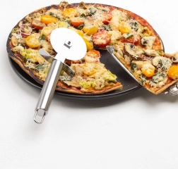 Objavte spoľahlivé nerezové koliesko na pizzu, s ktorým pizzu aj placky nakrájate na dokonale rovné diely počas pár sekúnd. Robustné celokovové prevedenie zaručuje odolnosť a dlhú životnosť, zatiaľ čo ergonomická rukoväť s chráničom prstov ponúka istý a bezpečný úchop.