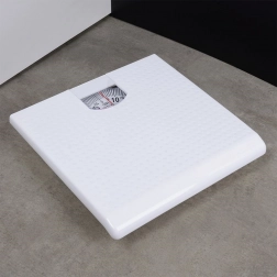 Mechanická kúpeľňová váha s odolným plastovým telom a nízkym profilom je ideálna na domáce použitie. Vďaka prehľadnej stupnici v kilogramoch do 120 kg rýchlo zistíte svoju hmotnosť bez čakania a bez nutnosti batérií. Čistý biely dizajn sa hodí do moderných aj klasických kúpeľní.