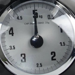 Veľký analógový ciferník s delením po 25 g zaistí rýchlu orientáciu a presný výsledok pri vážení surovín.