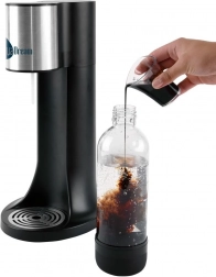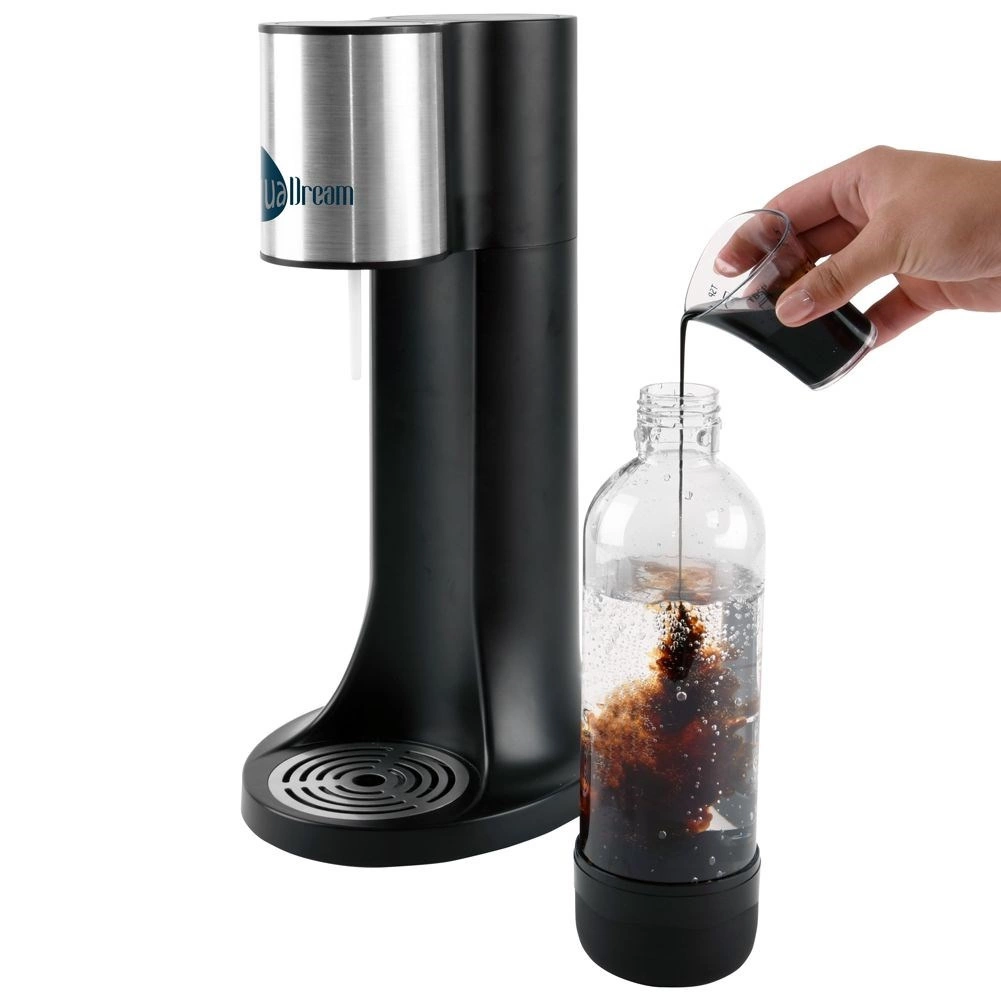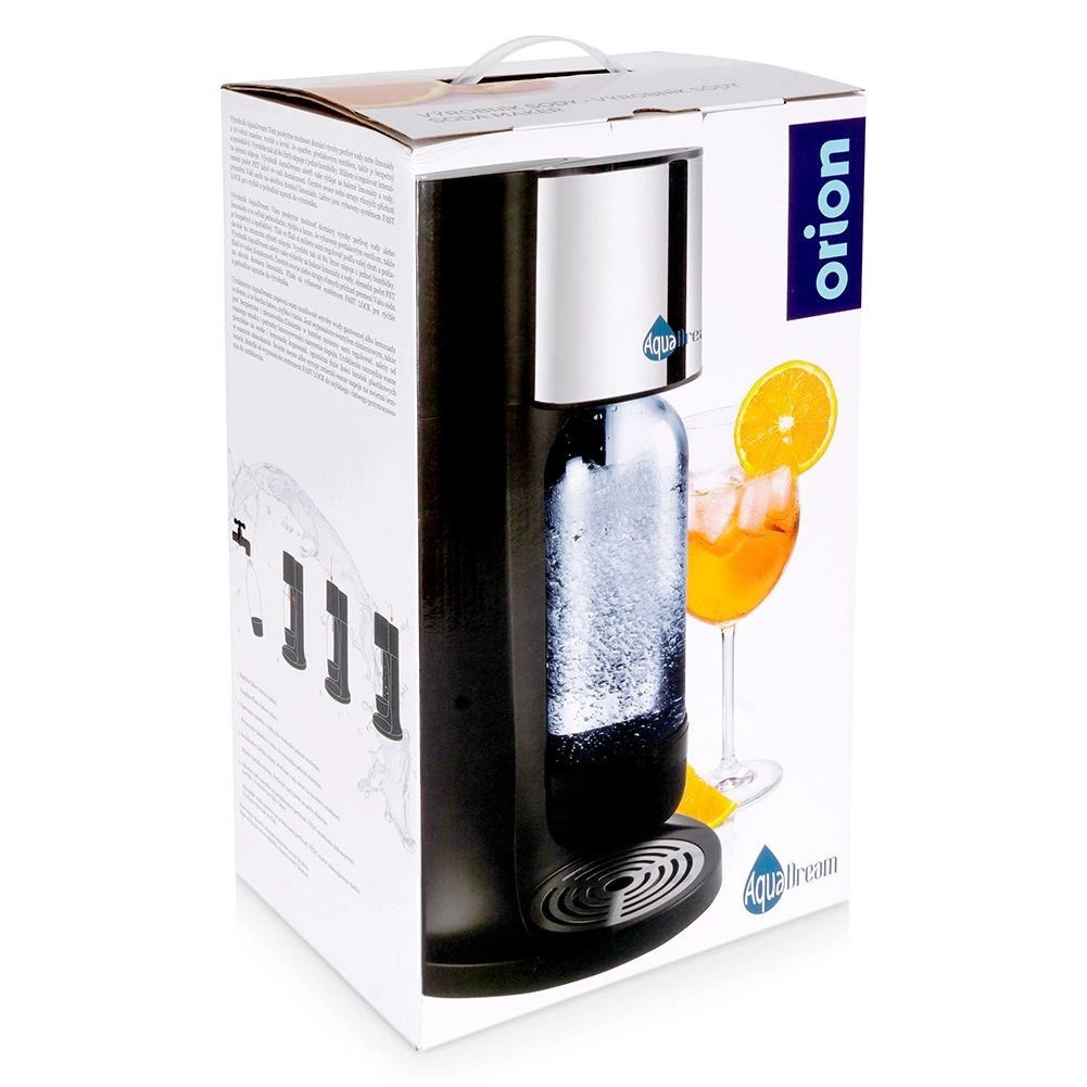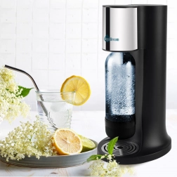 Štýlový domáci výrobník perlivej vody AQUADREAM v čiernej farbe vám umožní pripraviť si čerstvú perlivú vodu aj domáce limonády behom chvíľky. Vďaka regulácii intenzity sýtenia si nastavíte presne toľko bubliniek, koľko máte radi. Jeden CO2 valec vyrobí až 80 litrov nápojov, čo šetrí peniaze aj planétu – menej plastových fliaš v odpade. Bezpečnú prevádzku zabezpečuje bezpečnostný ventil a rýchle uchytenie fľaše FAST LOCK.