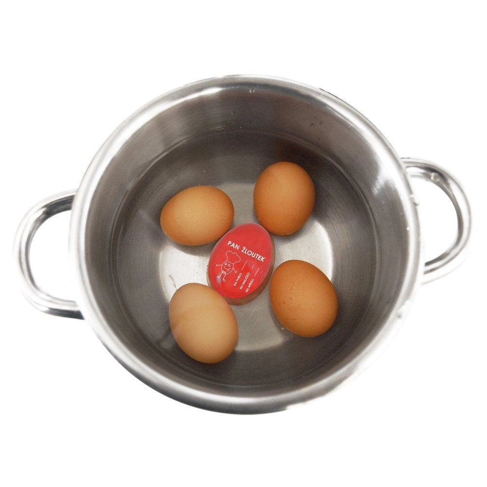 Praktická minútka na vajcia v tvare vajíčka vám presne ukáže, kedy sú vajcia na mäkko, na polomäkko alebo na tvrdo. Stačí ju vložiť do hrnca spolu s vajciami a vďaka teplotnému indikátoru máte vždy perfektný výsledok. Odolná, ľahko použiteľná a bez mechanických častí – ideálny pomocník do každej kuchyne.