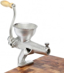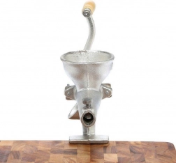 Telo z kvalitnej liatiny a drevená kľučka zaisťujú dlhú životnosť a pohodlné ručné lisovanie ovocia a zeleniny.