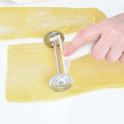 Stroj je vyrobený z kvalitného kovu a odolných plastov, má pevné upnutie pomocou svorky pre stabilitu pri práci a pohodlnú ručnú kľučku pre plynulé valcovanie a krájanie. Súčasťou sú tiež dve radielka na presné porciovanie cesta. Údržba je jednoduchá – po použití stačí utrieť, neodporúča sa umývať v umývačke.