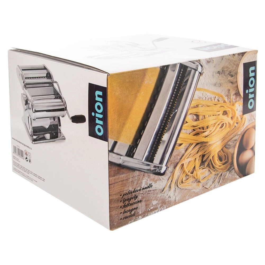 Objavte radosť z čerstvých cestovín vďaka robustnému manuálnemu stroju ORION. Vďaka deviatim plynule nastaviteľným polohám ľahko vyvaľkáte plát cesta až do šírky 15 cm a následne ho narežete na rôzne druhy cestovín – od jemných rezancov po široké stuhy či lasagne. Špeciálny nadstavec vám umožní pripraviť aj plnené ravioli.