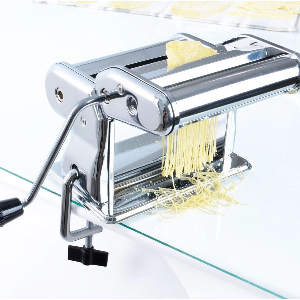 Domáca výroba cestovín nikdy nebola jednoduchšia. Tento ručný stroj na cestoviny ponúka až 9 nastavení hrúbky, nerezové valce a stabilné skrutkové uchytenie k doske. V balení nájdete stojan, 3 vymeniteľné nadstavce (každý s dvoma funkciami), 2 radielka a kľuku – pripravíte tak špagety, fettuccine, lasagne, rezance aj ravioli presne podľa chuti.