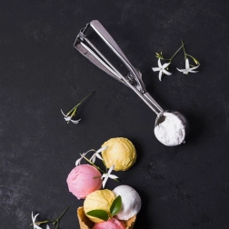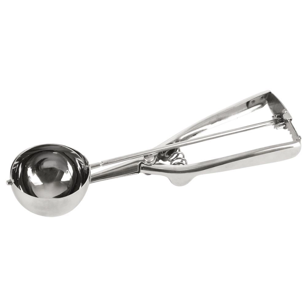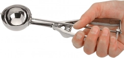 Praktická nerezová naberačka na zmrzlinu s priemerom 5,5 cm s automatickým uvoľňovacím mechanizmom pre jednoduché servírovanie. Vďaka ergonomickej rukoväti a kvalitnej nehrdzavejúcej oceli vytvoríte rovnomerné guľôčky bez námahy. Ideálna nielen na zmrzlinu, ale aj na zemiakovú kašu či ryžu.