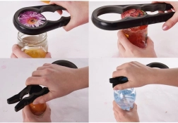 Praktický otvárač na poháre 4v1 s ergonomickým, protišmykovým úchopom uľahčí rýchle a bez námahy otvorenie viečok a uzáverov rôznych veľkostí. Vďaka 4 veľkostiam otvorov (2–8 cm) a kombinácii odolného plastu a gumy bezpečne otvoríte poháre s džemom, omáčkami aj fľaše s nápojmi. Kompaktné rozmery 23 × 9,5 × 2 cm, farba je zasielaná náhodne (zelená alebo oranžová).